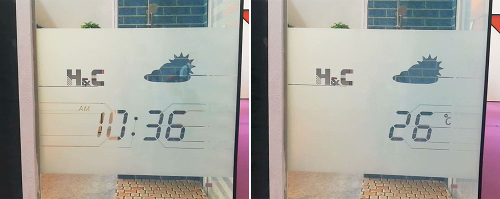 分區調光玻璃顯示即時時間、溫度