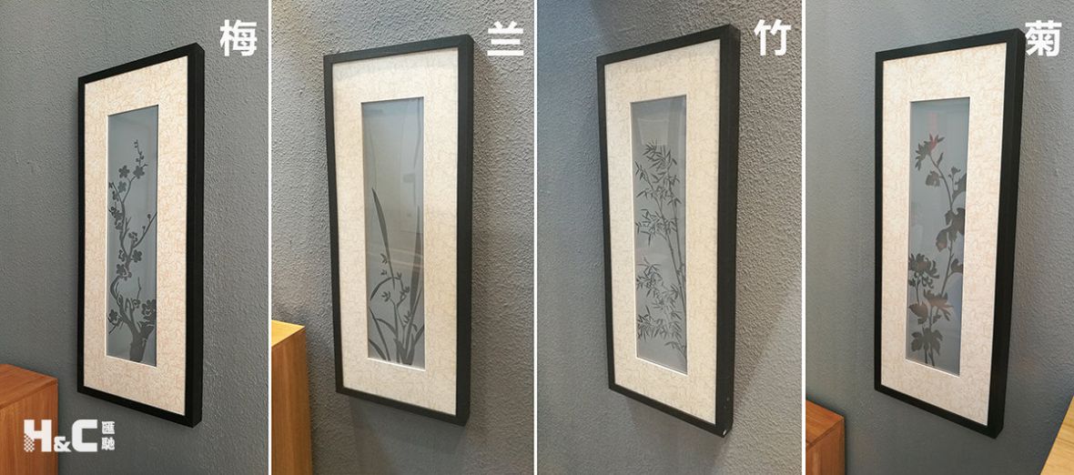 這是一種用電來控制的電子畫。它的特點(diǎn)在于,畫上的圖案是可以控制顯示或隱藏的。聽起來很不錯(cuò)吧?上圖就是刻繪了梅、蘭、竹、菊的四幅電子畫。
