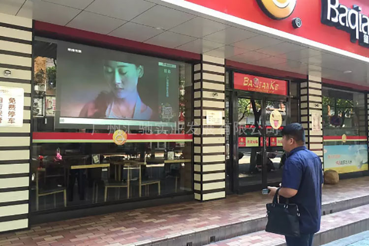在一些人員密集的商業街,我們可以看到很多LED屏幕的廣告,而我們要介紹的霧化玻璃廣告櫥窗,也可以媲美LED屏幕的效果。